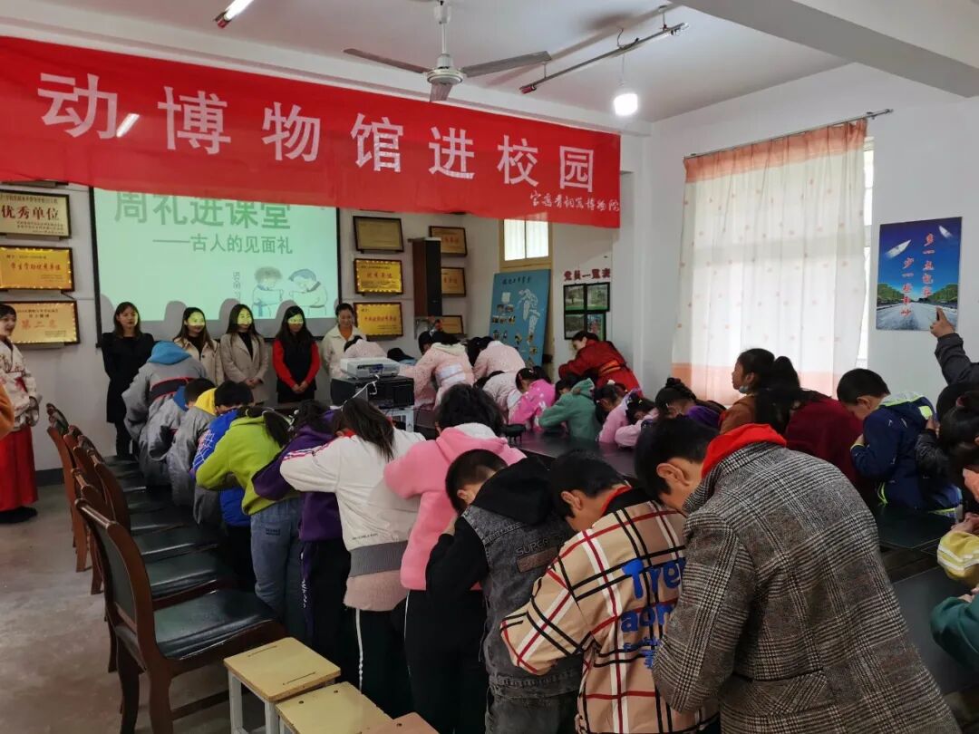 在讲解员的示范和教学后,孩子们对着辛勤教导他们的老师们行了长辈之礼,又对着每天一起学习一起进步的同学们相互行了平辈之礼。